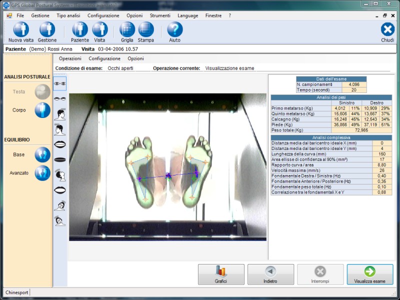 La visualizzazione consiste in una simulazione dell' esame di 20 secondi compreso il movimento del baricentro del paziente durante l' esame.
