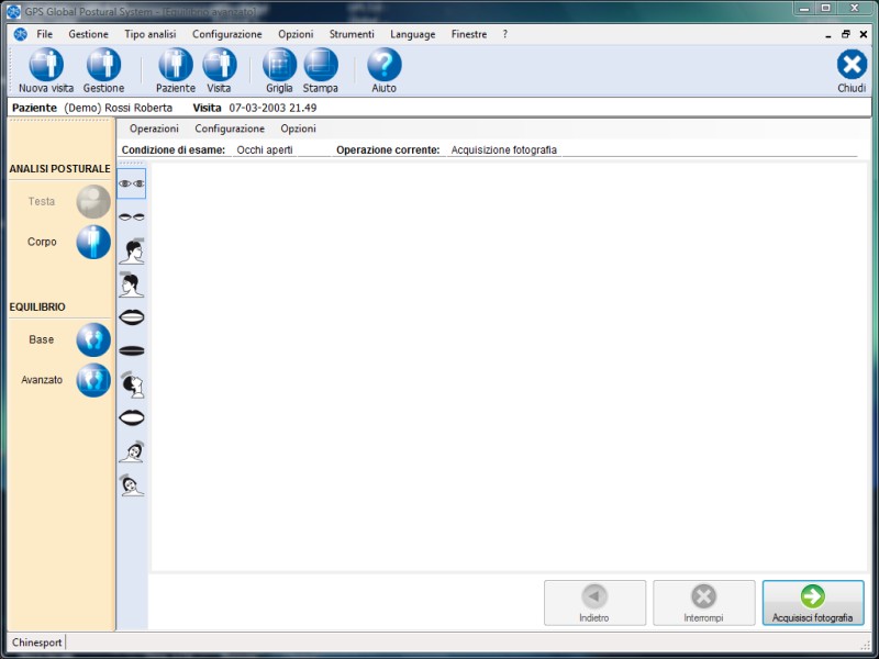 L' esame puņ essere effettuato nelle varie condizioni di esame del paziente che sono selezionabili sulla barra verticale sulla parte sinistra della finestra.