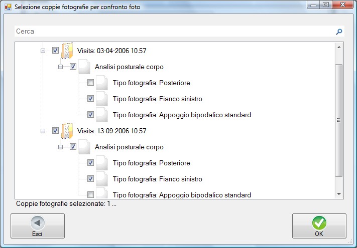 La selezione puņ essere effettuata sui tipi fotografia da accoppiare; per tipi fotografia accoppiabili si intende due tipi fotografia uguali appartententi a due visite diverse.